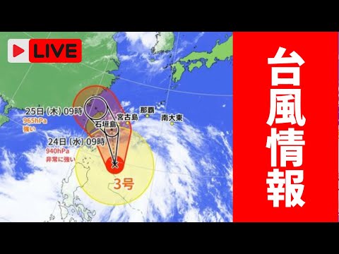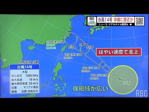 【台風情報】台風4号 今後ゆっくりと西へ「非常に強い」勢力ま タグ:台風情報 チャンネル名:【琉球放送】RBC NEWS 投稿時間:2026-04-10 06:15:15 【台風情報】台風26号の影響で高波と大雨に注意 沖縄は11日 タグ:台風情報 チャンネル名:【琉球放送】RBC NEWS 投稿時間:2025-11-10 10:20:37 【台風情報】台風25号(ウサギ)が週末に沖縄接近のおそれ 統 タグ:台風情報 チャンネル名:【琉球放送】RBC NEWS 投稿時間:2024-11-12 03:26:39 【台風情報】台風14号(プラサン)が大東島地方に最接近 今夜 タグ:台風情報 チャンネル名:【琉球放送】RBC NEWS 投稿時間:2024-09-18 10:17:16 【台風情報】台風14号 きょう夜遅くに最接近(沖縄テレビ)2 タグ:台風情報 チャンネル名:OTV沖縄テレビ 投稿時間:2024-09-18 03:06:54 【台風情報】台風14号最新情報(17日午前9時現在) タグ:台風情報 チャンネル名:【琉球放送】RBC NEWS 投稿時間:2024-09-17 03:14:20 【台風情報】大型の台風14号は18日に沖縄地方に近づく見込み タグ:台風情報 チャンネル名:OTV沖縄テレビ 投稿時間:2024-09-16 11:17:40 【台風情報】大型の台風14号(プラサン)勢力強めながら北上 タグ:台風情報 チャンネル名:【琉球放送】RBC NEWS 投稿時間:2024-09-16 09:06:53 【台風情報】台風14号 18日~19日頃にかけて沖縄地方に接 タグ:台風情報 チャンネル名:OTV沖縄テレビ 投稿時間:2024-09-16 04:10:43 【台風情報】大型の台風14号(プラサン)勢力強めながら北上 タグ:台風情報 チャンネル名:【琉球放送】RBC NEWS 投稿時間:2024-09-16 03:09:51 【台風情報 12日午後6時現在】台風13号(バビンカ)今後暴 タグ:台風情報 12日午 チャンネル名:【琉球放送】RBC NEWS 投稿時間:2024-09-12 10:16:18 【ライブ配信】台風3号接近中の沖縄・石垣島の様子 タグ:ライブ配信 台風 沖縄 okinawa live 台風3号 台風情報 typhoon 天気 weather 石垣島 チャンネル名:【琉球放送】RBC NEWS 投稿時間:2024-07-23 08:14:16 【台風情報】台風2号が発生 中国大陸へ 沖縄地方の週間予報も タグ:台風情報 台風 チャンネル名:【琉球放送】RBC NEWS 投稿時間:2024-05-31 10:04:34 新たに “台風のタマゴ” 発生 南シナ海の熱帯低気圧 24時 タグ:30日午後3時時点 熱帯低気圧 台風情報 チャンネル名:【琉球放送】RBC NEWS 投稿時間:2024-05-30 10:42:51