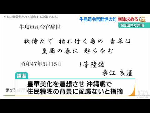 X Facebook はてブ Pocket LINE Pinterest 牛島司令官「辞世の句」 市民団体が陸上自衛隊にWEBサイトか チャンネル名:【琉球放送】RBC NEWS 投稿時間:2024-06-07 09:47:42