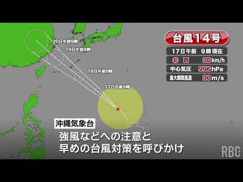 【台風情報】台風4号 今後ゆっくりと西へ「非常に強い」勢力ま タグ:台風情報 チャンネル名:【琉球放送】RBC NEWS 投稿時間:2026-04-10 06:15:15 【台風情報】台風26号の影響で高波と大雨に注意 沖縄は11日 タグ:台風情報 チャンネル名:【琉球放送】RBC NEWS 投稿時間:2025-11-10 10:20:37 【台風情報】台風25号(ウサギ)が週末に沖縄接近のおそれ 統 タグ:台風情報 チャンネル名:【琉球放送】RBC NEWS 投稿時間:2024-11-12 03:26:39 【台風情報】台風14号(プラサン)が大東島地方に最接近 今夜 タグ:台風情報 チャンネル名:【琉球放送】RBC NEWS 投稿時間:2024-09-18 10:17:16 【台風情報】台風14号 きょう夜遅くに最接近(沖縄テレビ)2 タグ:台風情報 チャンネル名:OTV沖縄テレビ 投稿時間:2024-09-18 03:06:54 【台風情報】台風14号最新情報(17日午前9時現在) タグ:台風情報 チャンネル名:【琉球放送】RBC NEWS 投稿時間:2024-09-17 03:14:20 【台風情報】大型の台風14号は18日に沖縄地方に近づく見込み タグ:台風情報 チャンネル名:OTV沖縄テレビ 投稿時間:2024-09-16 11:17:40 【台風情報】大型の台風14号(プラサン)勢力強めながら北上 タグ:台風情報 チャンネル名:【琉球放送】RBC NEWS 投稿時間:2024-09-16 09:06:53 【台風情報】台風14号 18日~19日頃にかけて沖縄地方に接 タグ:台風情報 チャンネル名:OTV沖縄テレビ 投稿時間:2024-09-16 04:10:43 【台風情報】大型の台風14号(プラサン)勢力強めながら北上 タグ:台風情報 チャンネル名:【琉球放送】RBC NEWS 投稿時間:2024-09-16 03:09:51 【台風情報 12日午後6時現在】台風13号(バビンカ)今後暴 タグ:台風情報 12日午 チャンネル名:【琉球放送】RBC NEWS 投稿時間:2024-09-12 10:16:18 【ライブ配信】台風3号接近中の沖縄・石垣島の様子 タグ:ライブ配信 台風 沖縄 okinawa live 台風3号 台風情報 typhoon 天気 weather 石垣島 チャンネル名:【琉球放送】RBC NEWS 投稿時間:2024-07-23 08:14:16 【台風情報】台風2号が発生 中国大陸へ 沖縄地方の週間予報も タグ:台風情報 台風 チャンネル名:【琉球放送】RBC NEWS 投稿時間:2024-05-31 10:04:34 新たに “台風のタマゴ” 発生 南シナ海の熱帯低気圧 24時 タグ:30日午後3時時点 熱帯低気圧 台風情報 チャンネル名:【琉球放送】RBC NEWS 投稿時間:2024-05-30 10:42:51