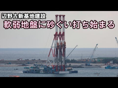辺野古の新基地建設、軟弱地盤に砂ぐい打ち始まる